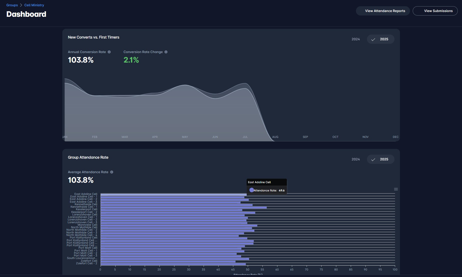 Track any group type from cell groups to departments, and their performance. All fully customizable to any structure!